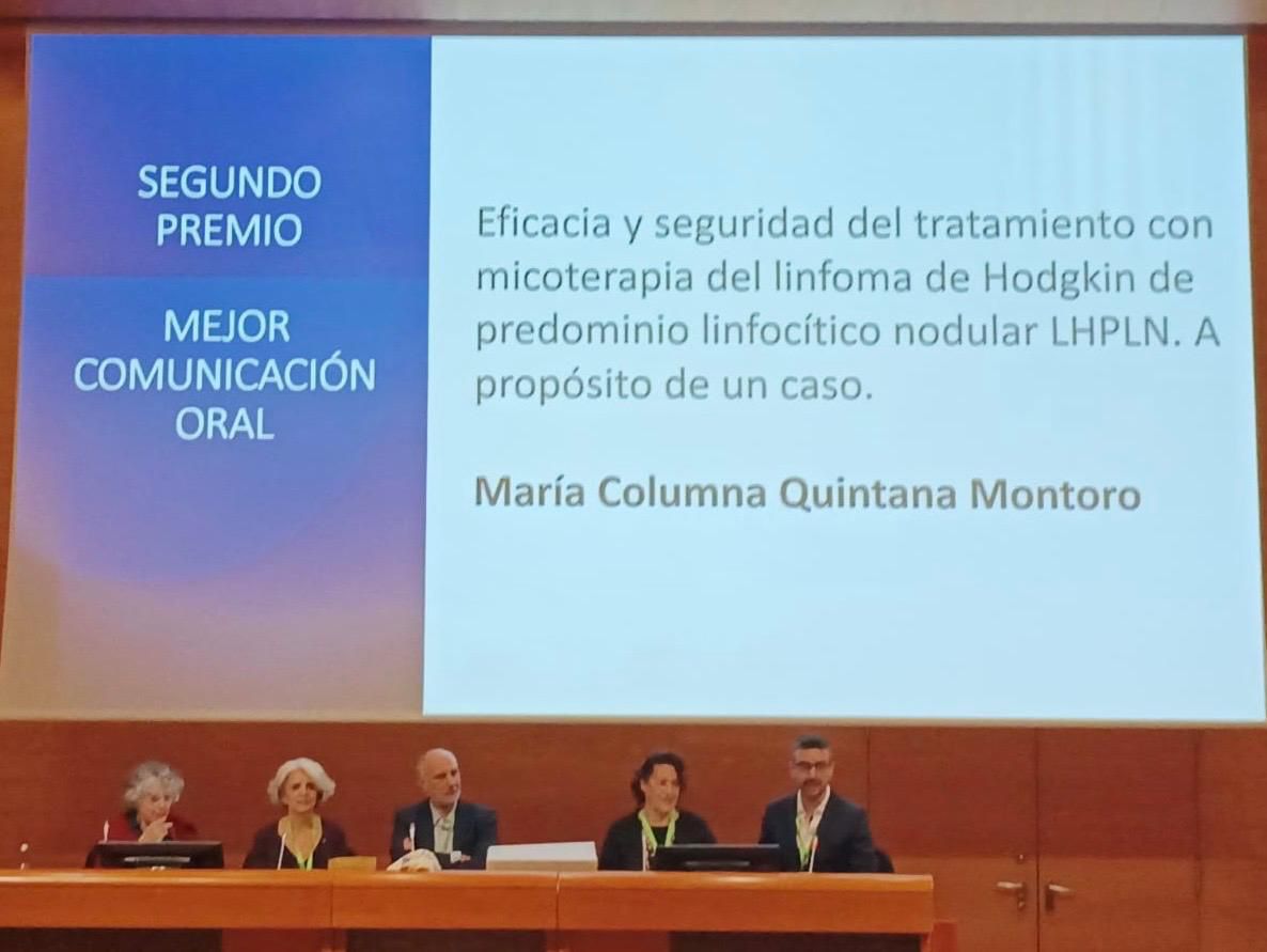 La Sociedad Española de Salud y Medicina Integrativa (SESMI) le otorgó a María el premio a la segunda mejor comunicación oral titulada “Eficacia y seguridad del tratamiento con micoterapia del linfoma de Hodgkin de predominio linfocítico nodular LHPLN. A propósito de un caso.